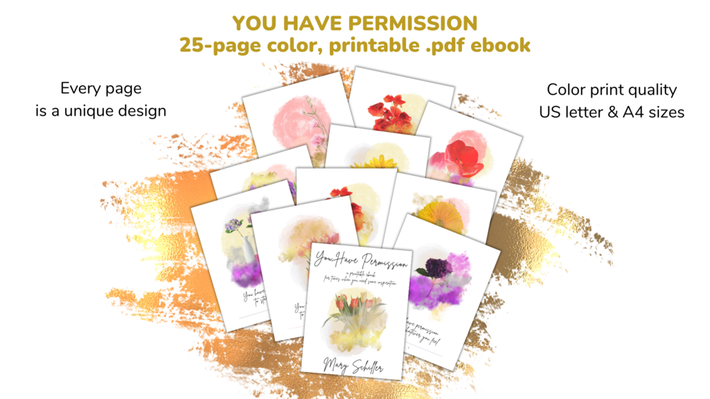 From Mary Schiller, the author of the book on Amazon called You Have Permission, comes this full-color, printable, 25-page ebook of inspirational images and original quotes.